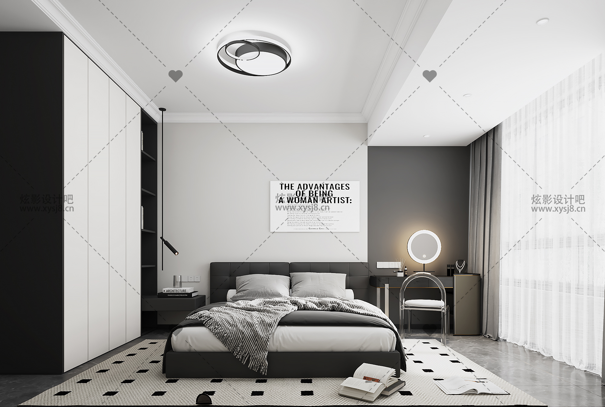 现代黑白灰卧室